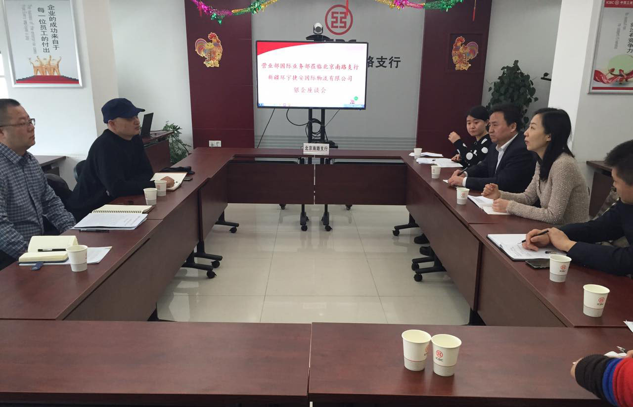 2017年2月16日上午11:30,假工行烏魯木齊市北京南路支行三樓多功能會(huì)議室,召開(kāi)了工行與我公司關(guān)于購(gòu)付匯的“銀企座談會(huì)”。參加本次會(huì)議的有---環(huán)宇捷安:李清貴董事長(zhǎng)、梁志軍總經(jīng)理、涉外經(jīng)理麗薩;工行:自治區(qū)分行國(guó)際業(yè)務(wù)部副總經(jīng)理覃英、國(guó)際業(yè)務(wù)部執(zhí)行經(jīng)理朱玉文,工行北京南路支行李行長(zhǎng)、支行涉外業(yè)務(wù)經(jīng)理夏小雙,共7人參加會(huì)議,會(huì)議由李行長(zhǎng)主持。