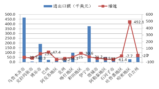 圖2 1-5月各地州進(jìn)出口情況