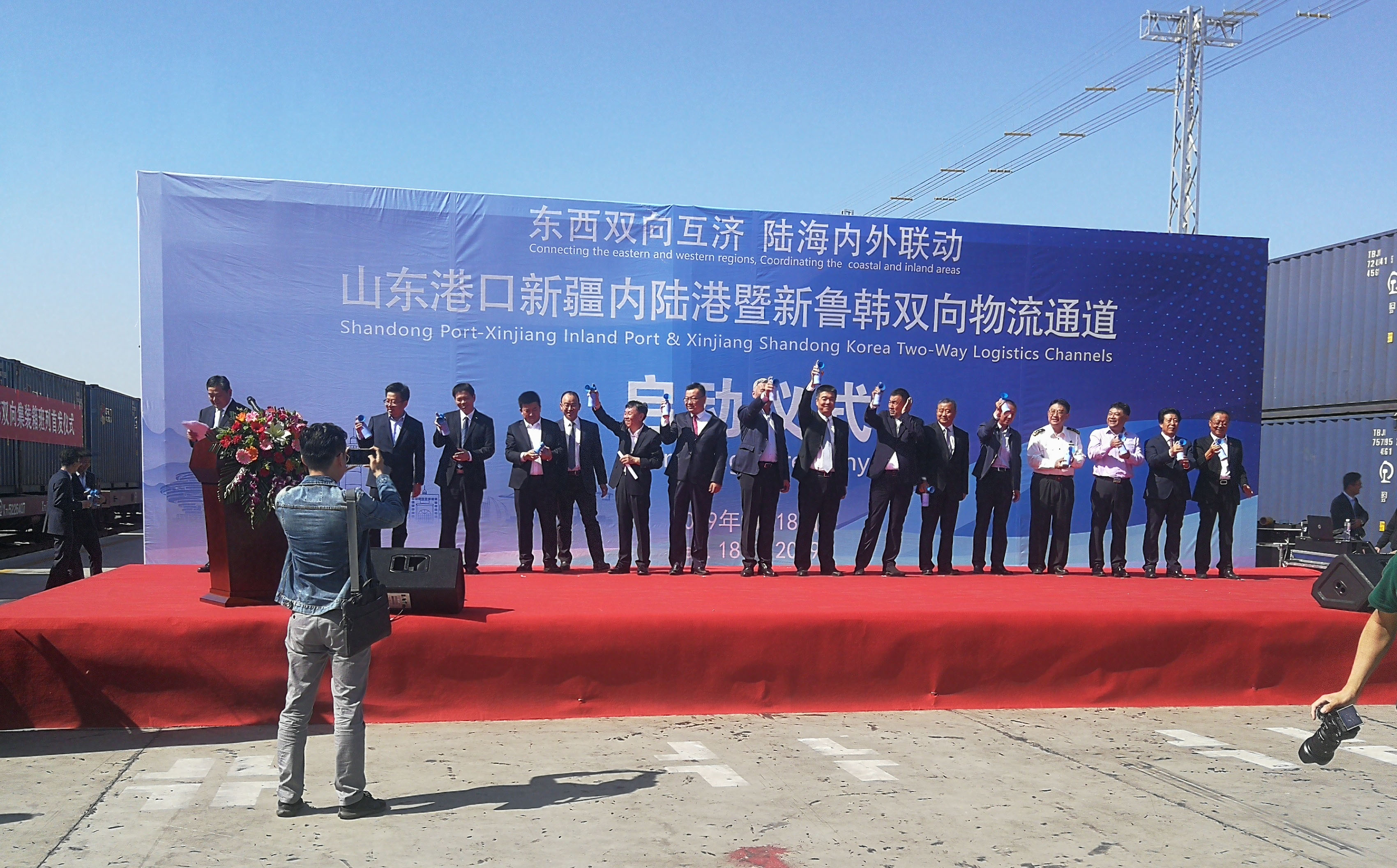 2019年9月18日13時,一列滿載番茄醬的雙向物流通道班列從烏魯木齊國際陸港區(qū)出發(fā),途經(jīng)山東,駛向韓國。該趟班列的開行,為烏魯木齊市周邊及全疆地區(qū)進出口企業(yè)提供了全新的物流服務(wù)。當日上午由山東港口集團主辦,山東港口集團青島港、烏魯木齊國際陸港區(qū)承辦的“東西雙向互濟、陸海內(nèi)外聯(lián)動”山東港口走進新疆服務(wù)推介會、山東港口新疆內(nèi)陸港暨新魯韓雙向物流通道啟動儀式在烏魯木齊市舉行。